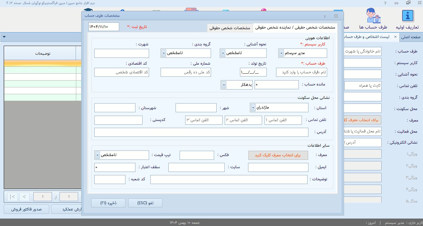 ۵. تعریف و مدیریت طرف حساب (مشتریان، تأمینکنندگان، شرکا)