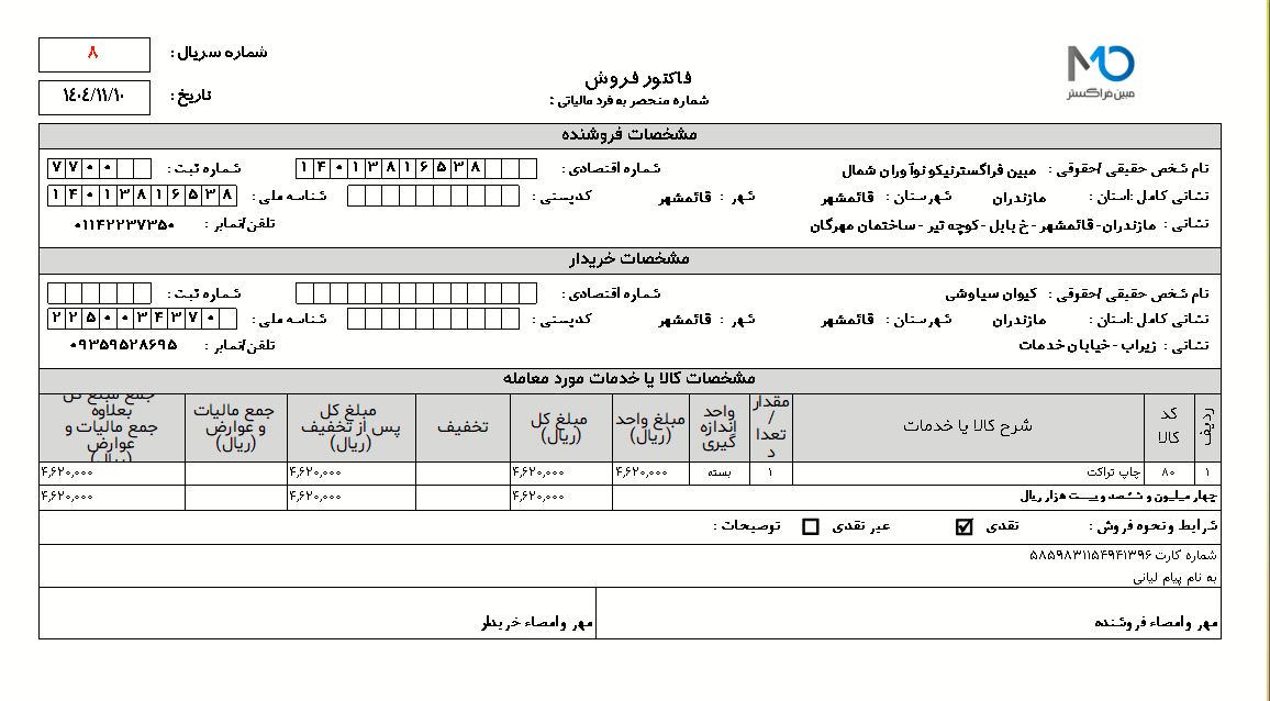 ۳۱. چاپ حرفهای فاکتورها و رسیدها
