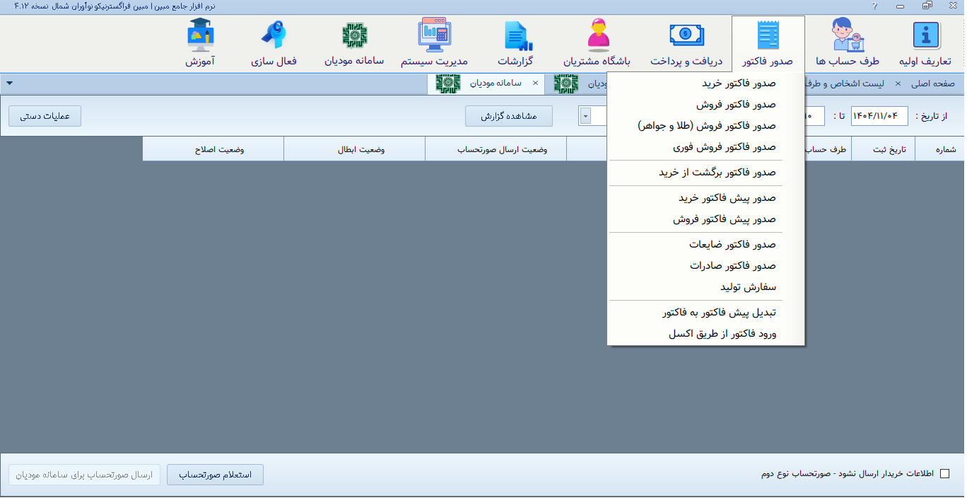 ۱۱. ارسال و چاپ فاکتورهای مشتری